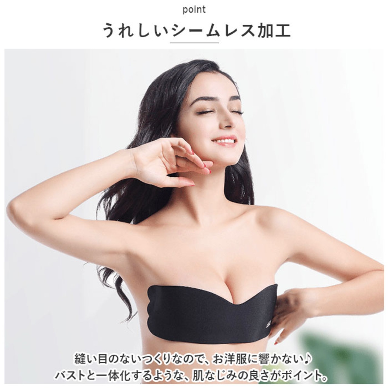 ・縫い目のないつくりなので、お洋服に響かない♪バストと一体化するような、肌なじみの良さがポイント。
