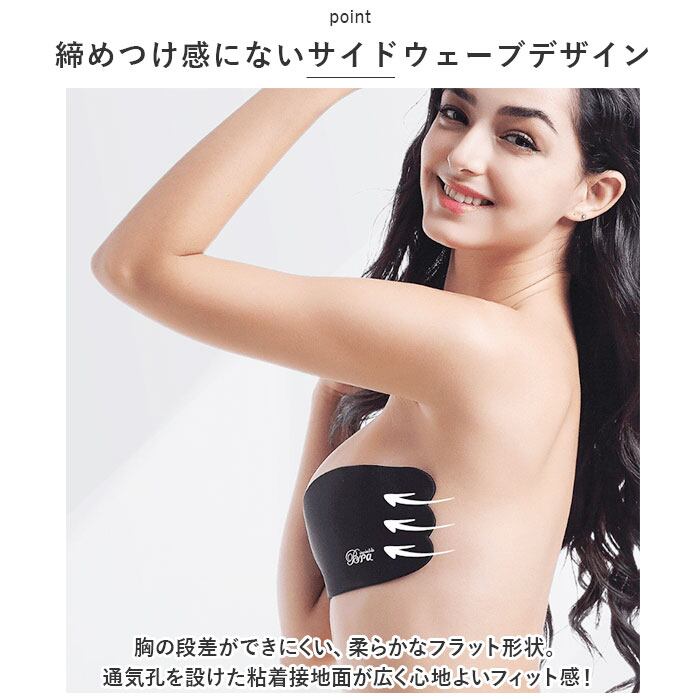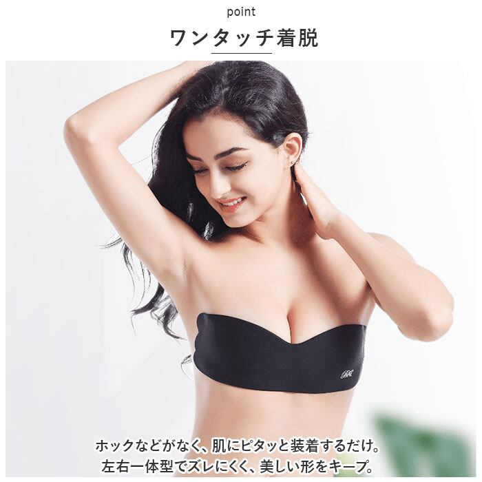 ・ホックなどがなく、肌にピタッと装着するだけ。左右一体型でズレにくく、美しい形をキープ。