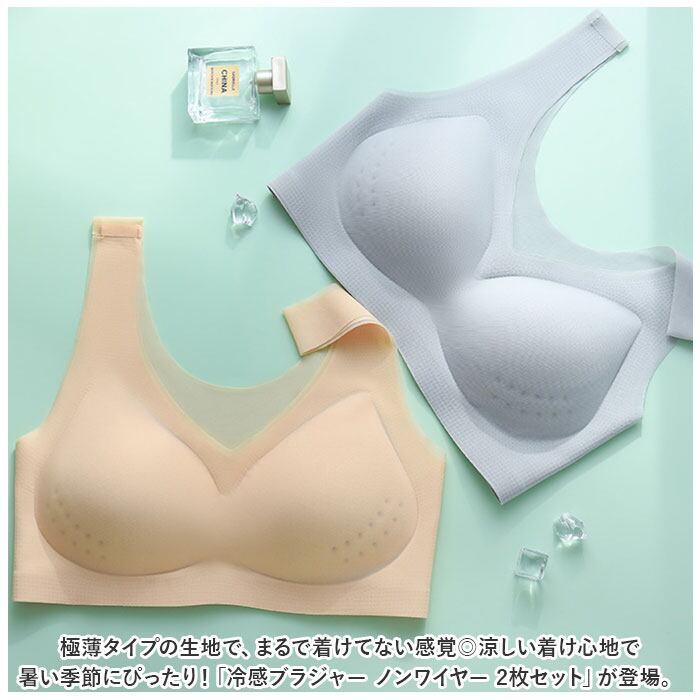 ・バストを心地よくホールド!付けている感覚が少ない、冷感ブラジャー (ノンワイヤータイプ)2枚セット。
