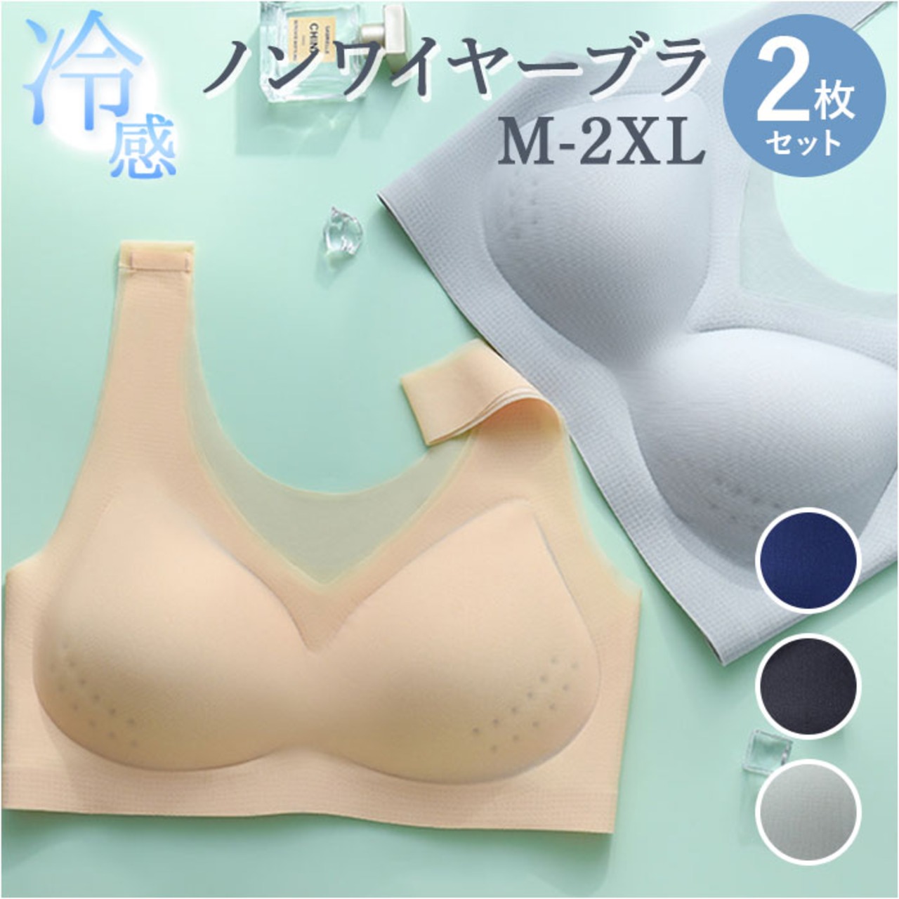 冷感ブラジャー ノンワイヤー 2枚セット mamsmbr01set2