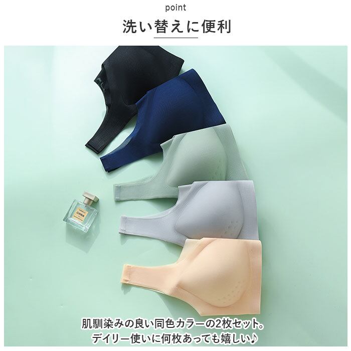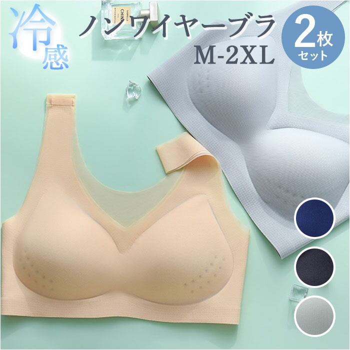 ブラジャー 通販 ノンワイヤーブラ ナイトブラ シームレス ブラ インナー 下着 肌着 ランジェリー ワイヤレスブラ スポーツブラ スポブラ 2枚セット セット 涼しい 冷感 夏 薄手 軽量 吸水 速乾 通気性 メッシュ 柔らかい レディース