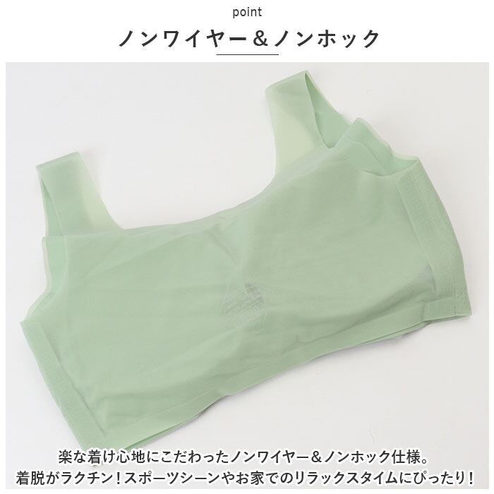 ・ホックなどがなく、頭からすっぽり被るだけ。スポーツブラやナイトブラとしても活躍!
