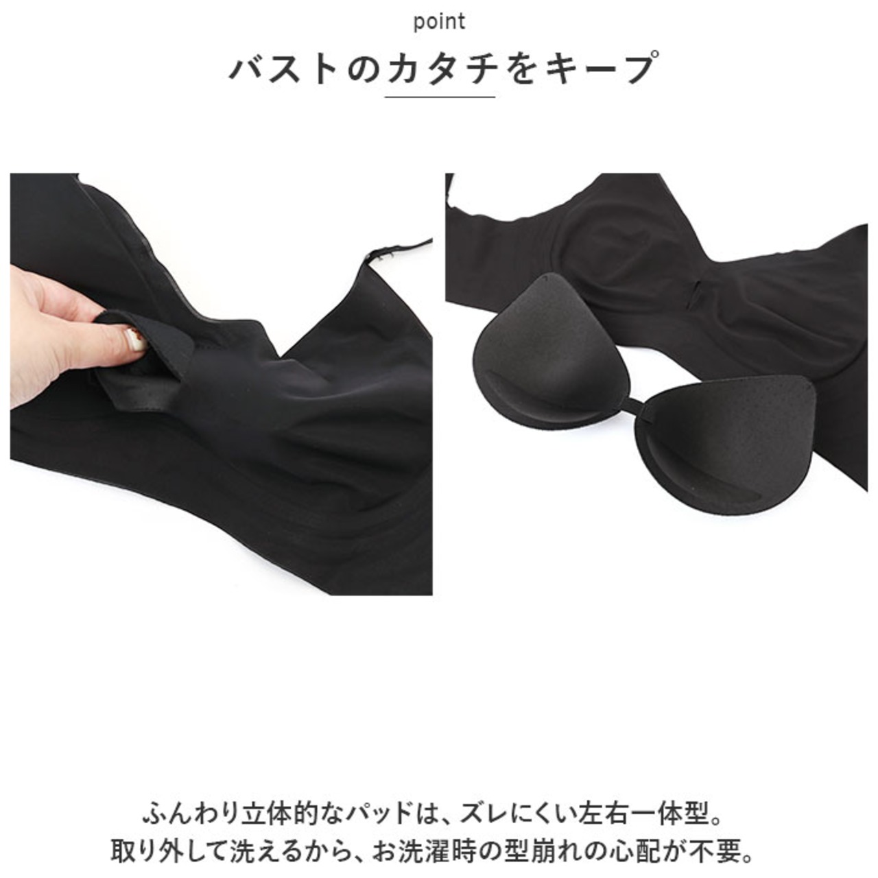 ・ふんわり立体的なパッドは、ズレにくい左右一体型。取り外して洗えるから、お洗濯時の型崩れの心配が不要。