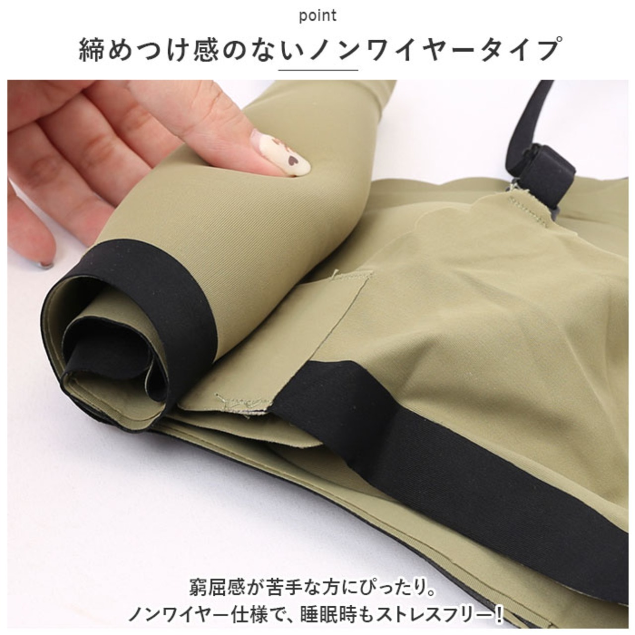 ・窮屈感が苦手な方にぴったり。ノンワイヤー仕様で、睡眠時もストレスフリー!