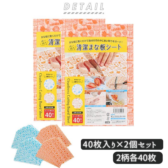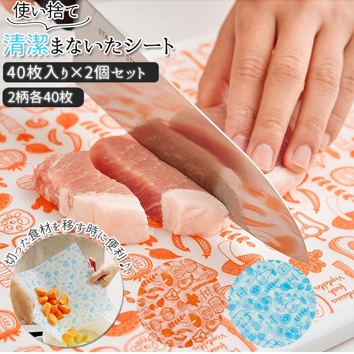 まな板シート 使い捨て 通販 清潔まな板シート 40枚入 2個セット まな板 まないた 汚れ防止 におい移り防止 色移り ニオイ移り 雑菌対策 粉飛び おしゃれ かわいい ワイズコーポレーション シートまな板 カッティングボード 調理道具 調理器具