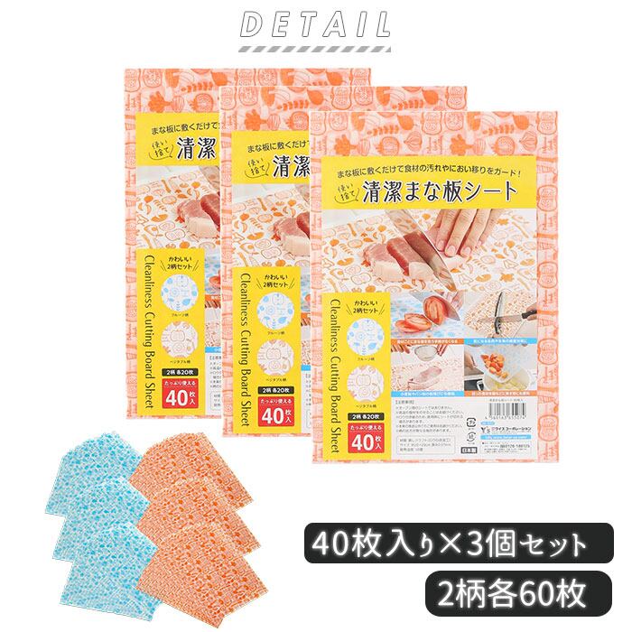 まな板シート 使い捨て 通販 清潔まな板シート 40枚入 3個セット まな板 まないた 汚れ防止 におい移り防止 色移り ニオイ移り 雑菌対策 粉飛び おしゃれ かわいい ワイズコーポレーション シートまな板 カッティングボード 調理道具 調理器具