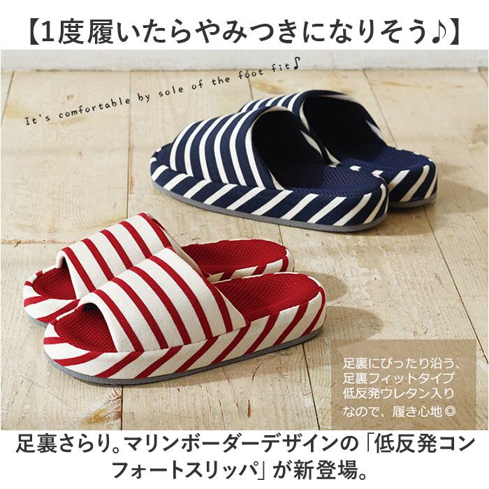 ・足裏さらり。マリンボーダーデザインの「低反発コンフォートスリッパ」が新登場。