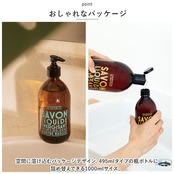 ・空間に溶け込むパッケージデザイン。495mLタイプの瓶ボトルに詰め替えできる1000mLサイズ。