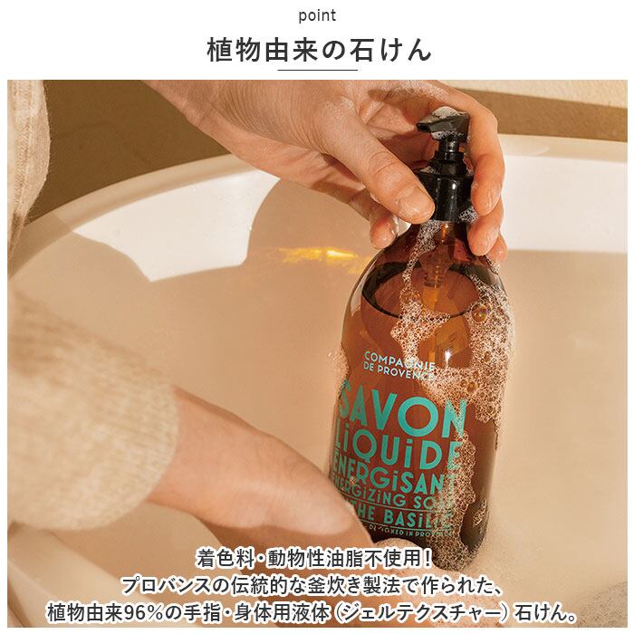 ・着色料・動物性油脂不使用!プロバンスの伝統的な釜炊き製法で作られた、植物由来96%の手指・身体用液体(ジェルテクスチャー)石けん。