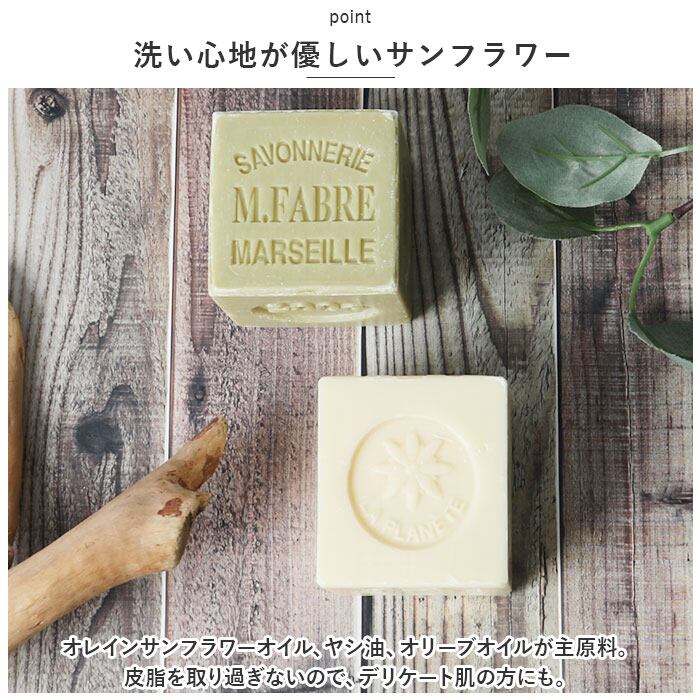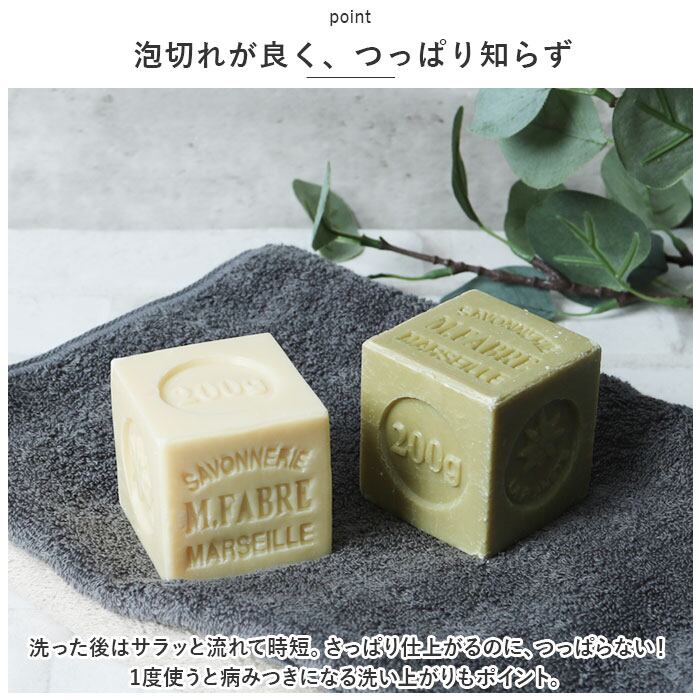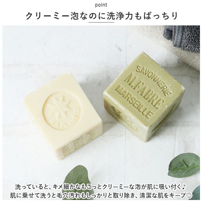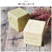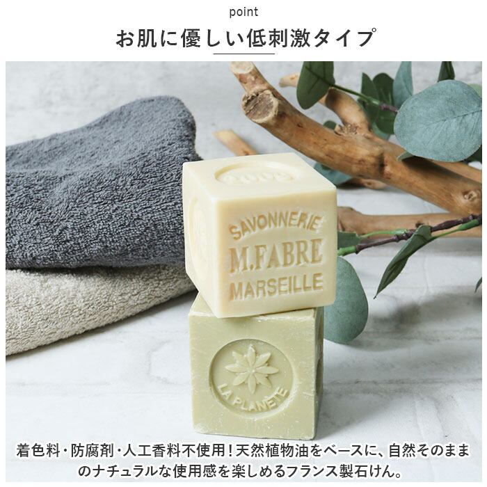 ・着色料・防腐剤・人工香料不使用!天然植物油をベースに、自然そのままのナチュラルな使用感を楽しめるフランス製石けん。