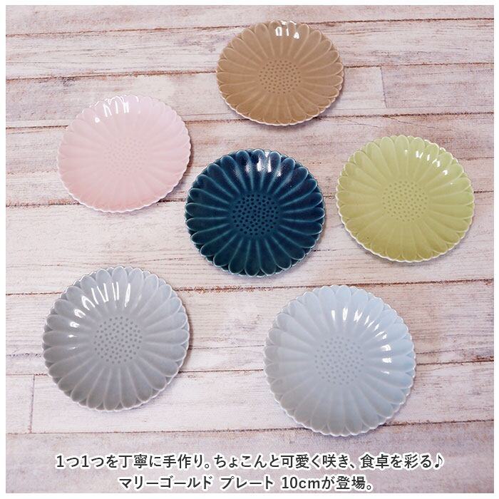 1つ1つを丁寧に手作り。ちょこんと可愛く咲き、食卓を彩る♪ マリーゴールド プレート 10cmが登場。