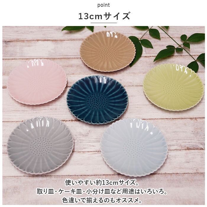 ・使いやすい約13cmサイズ。取り皿・ケーキ皿・小分け皿など用途はいろいろ。色違いで揃えるのもオススメ。