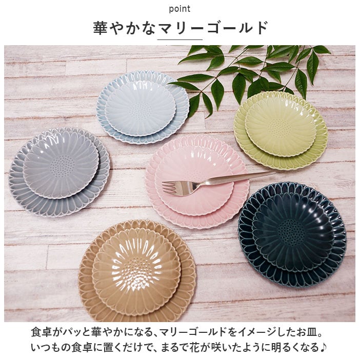 ・食卓がパッと華やかになる、マリーゴールドをイメージしたお皿。いつもの食卓に置くだけで、まるで花が咲いたように明るくなる♪