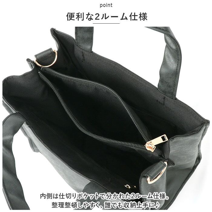 ・内側は仕切りポケットで分かれた2ルーム仕様。整理整頓しやすく、誰でも収納上手に♪