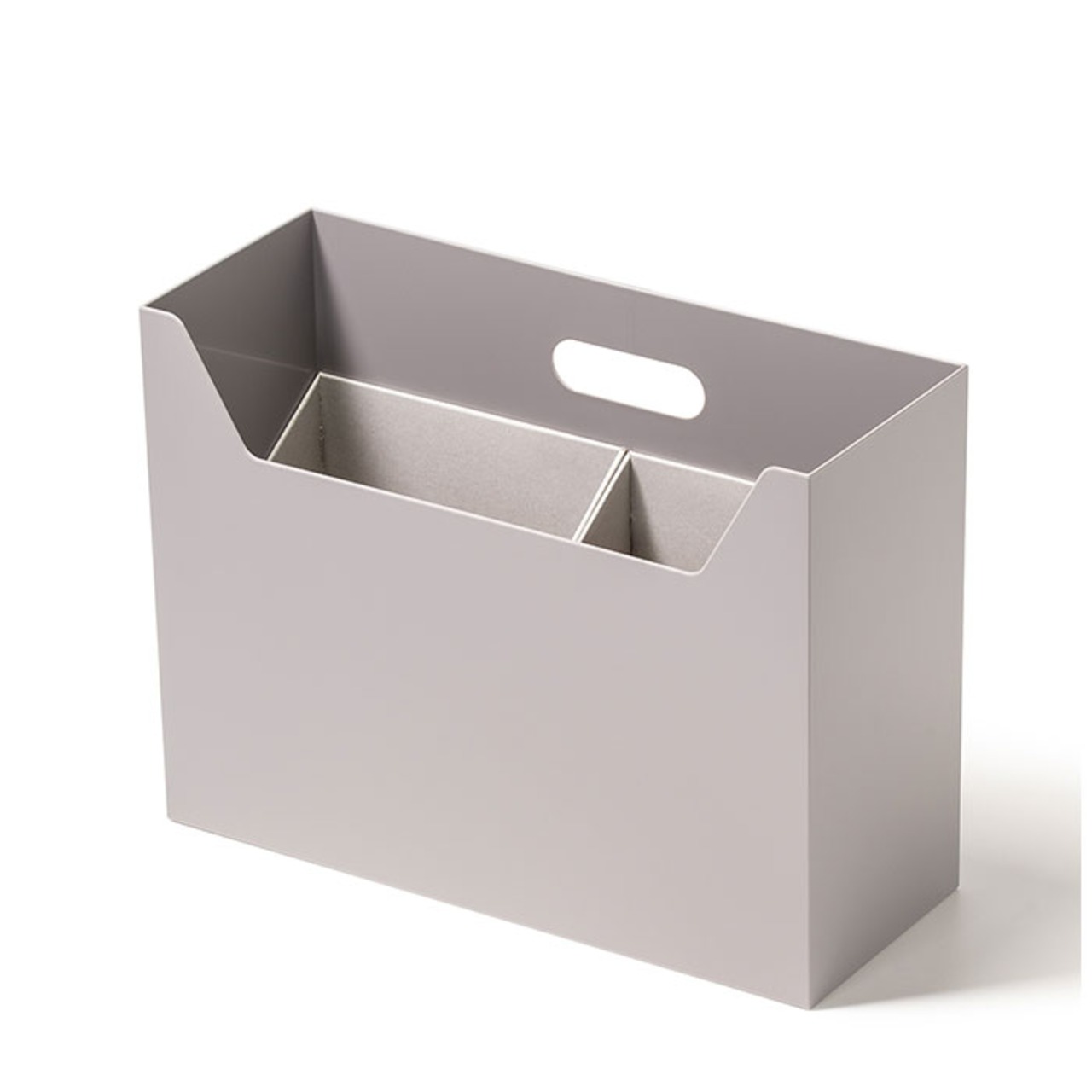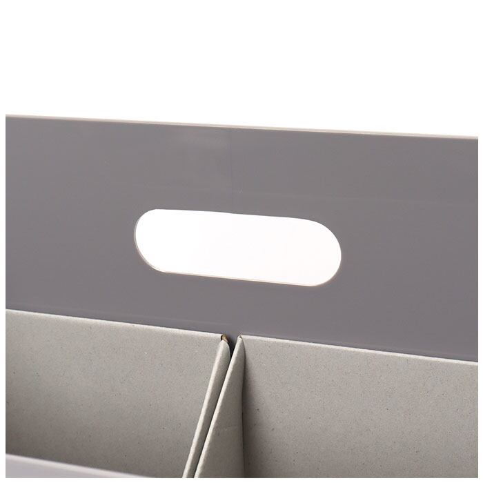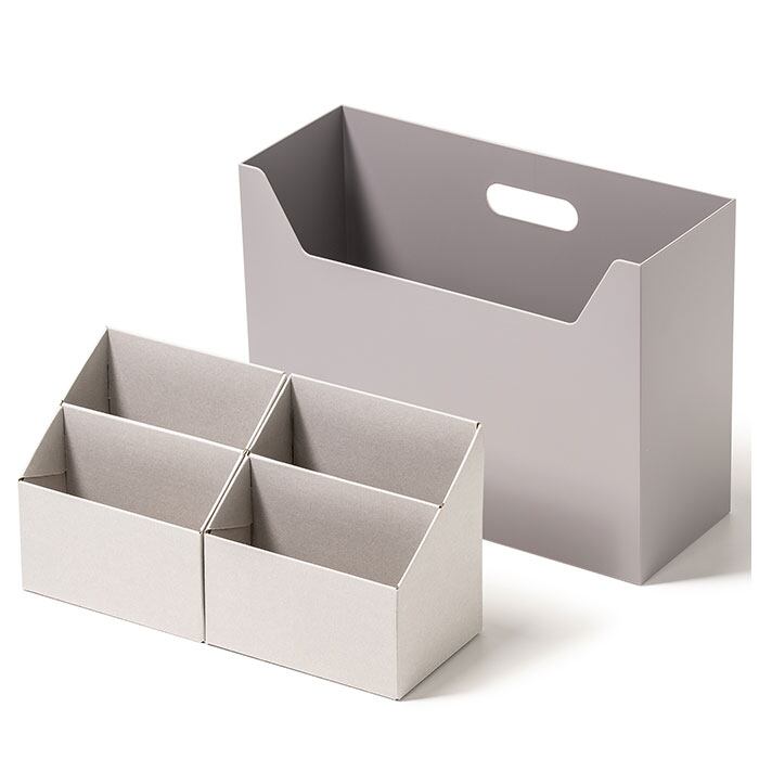 ・紙製のインナーが2個付属。本体の1/2の大きさで、A5サイズのノートが縦向きにすっぽり。ボックス内を仕切ることで物の定位置を決めやすく、立てる収納で取り出しがスムーズ◎