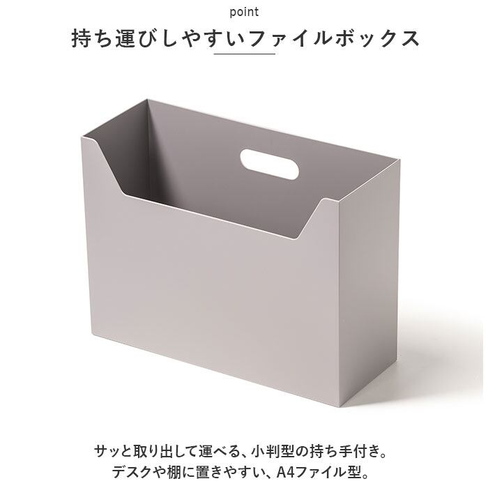 ・サッと取り出して運べる、小判型の持ち手付き。デスクや棚に置きやすい、A4ファイル型。