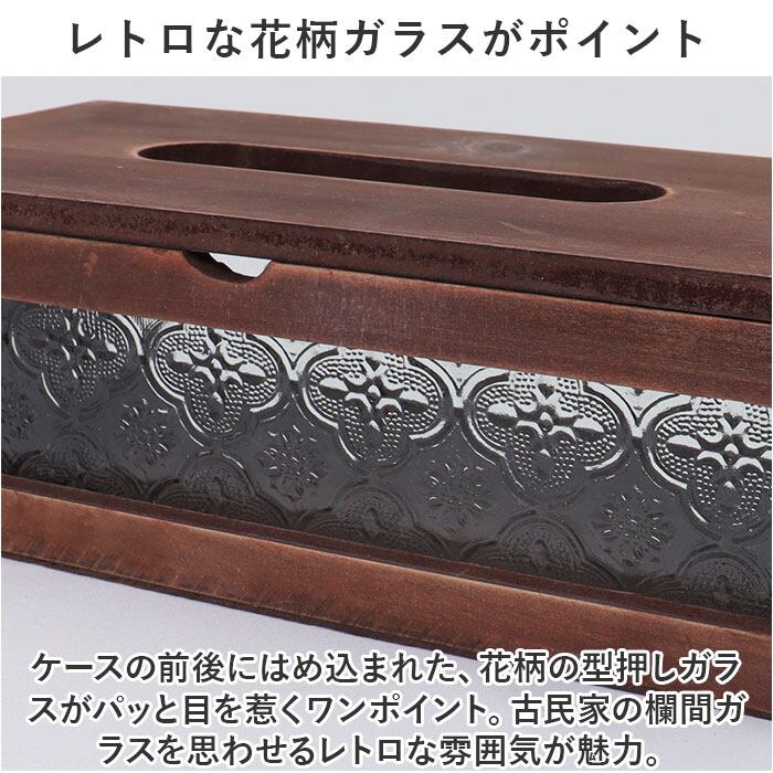 ・ケースの前後にはめ込まれた、花柄の型押しガラスがパッと目を惹くワンポイント。古民家の欄間ガラスを思わせるレトロな雰囲気が魅力。