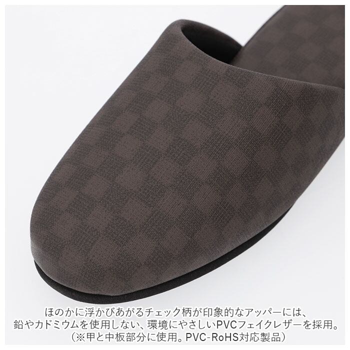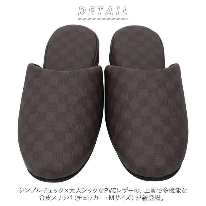 ・シンプルなチェック×大人シックなPVCレザーの組み合わせがお洒落♪「FEEL FOOT」から、上質で多機能な合皮スリッパ(チェッカー・Mサイズ)が新登場。
