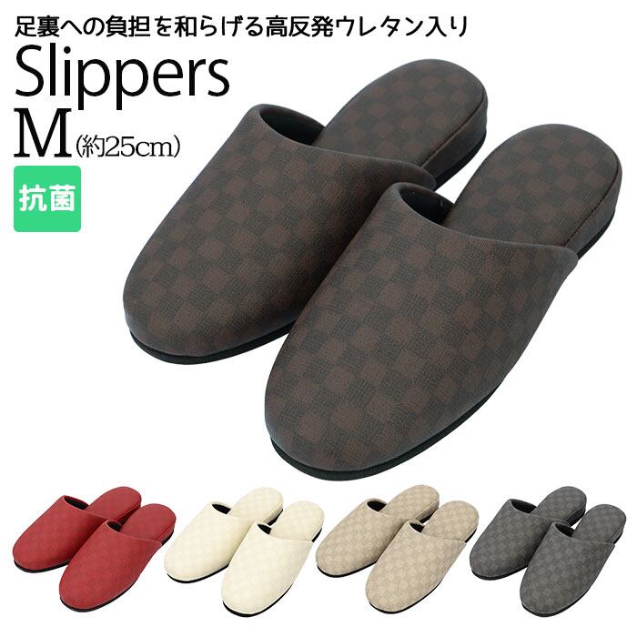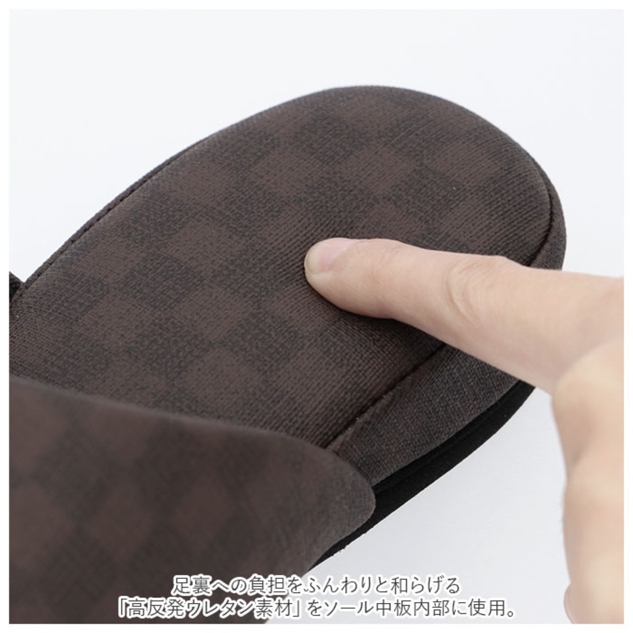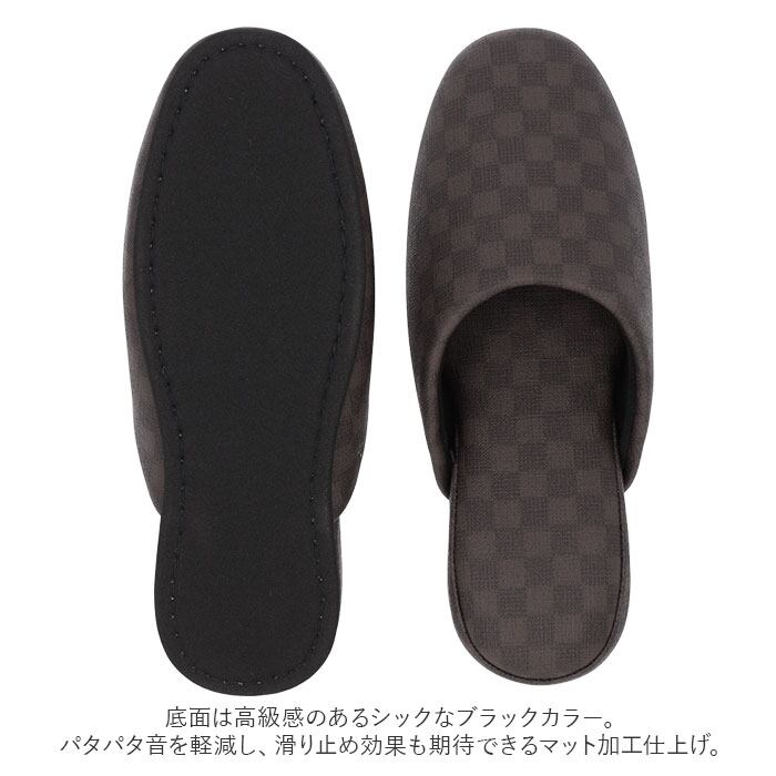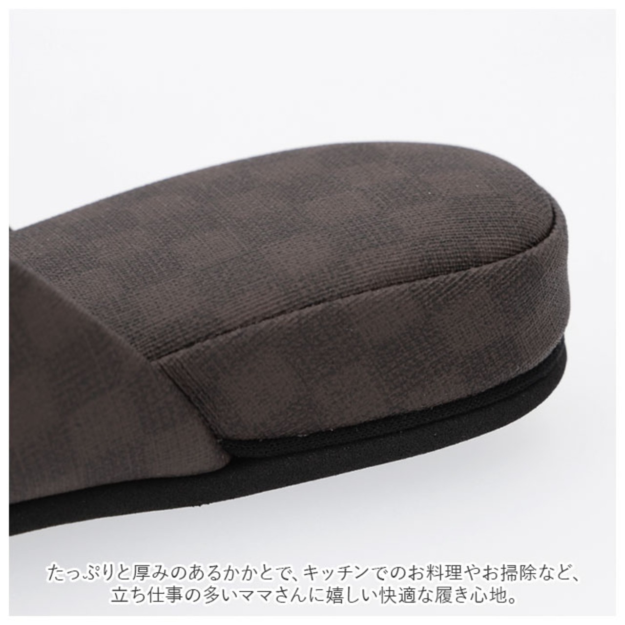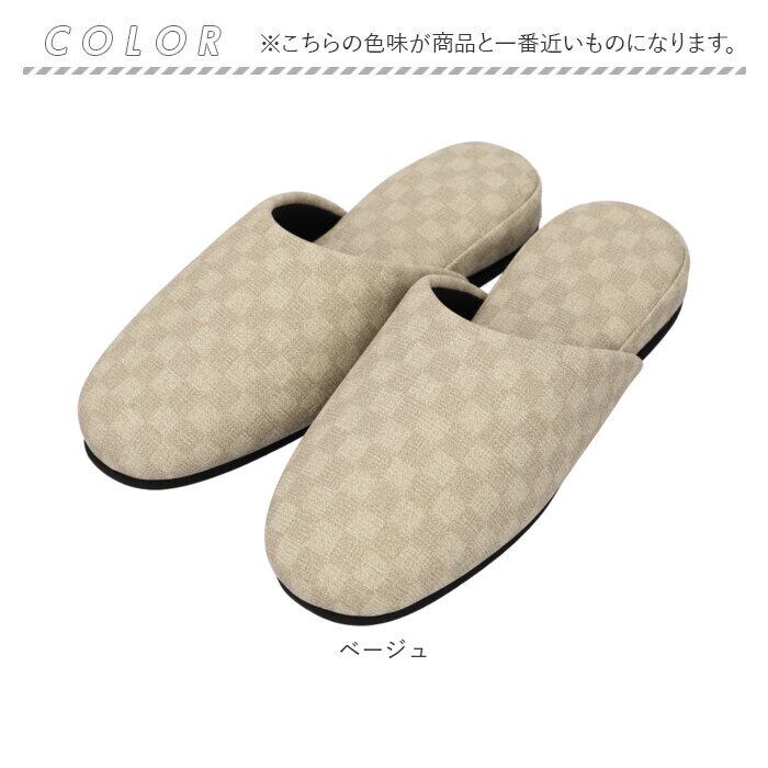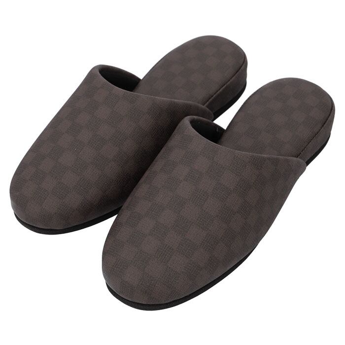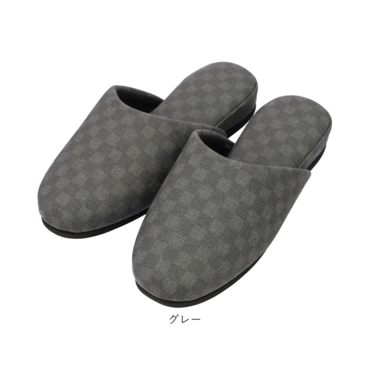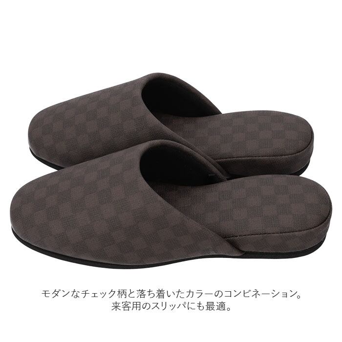 ・玄関に並べておくだけで、インテリアがグッと華やぐ!モダンなチェック柄と落ち着いたカラーのコンビネーション。来客用のスリッパにも最適。