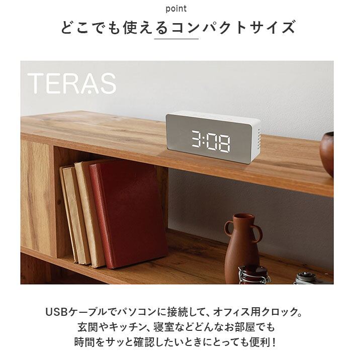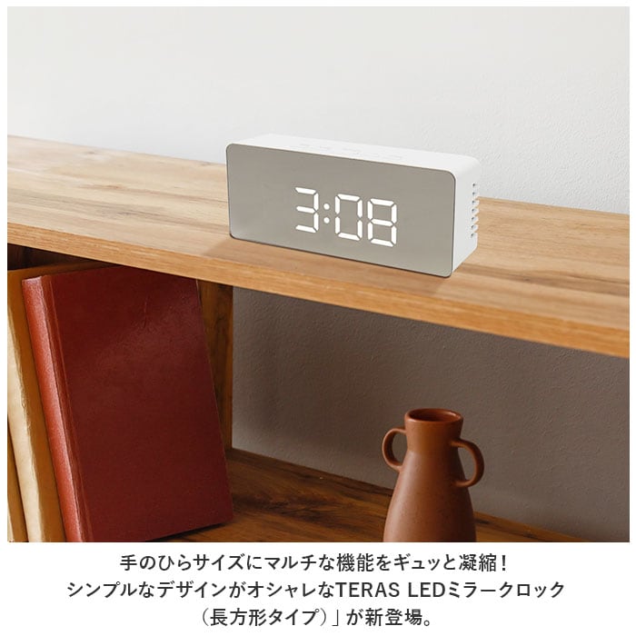 ・手のひらサイズにマルチな機能をギュッと凝縮!シンプルなデザインがオシャレなTERAS LEDミラークロック(長方形タイプ)」が新登場。