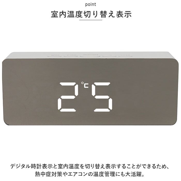 目覚まし時計 デジタル 通販 TERAS LEDミラークロック マクロス MEC-18 置き時計 置時計 デジタル目覚まし時計 時計 アラーム スヌーズ 温度計 電池 USB シンプル モダン 寝室 インテリア 雑貨