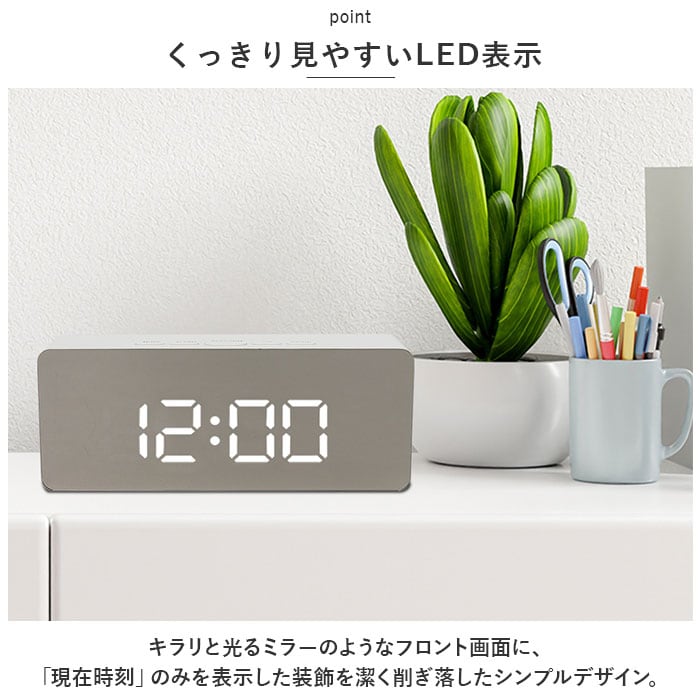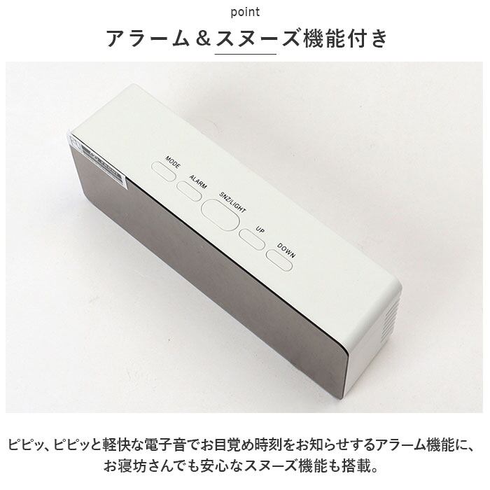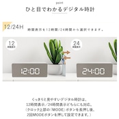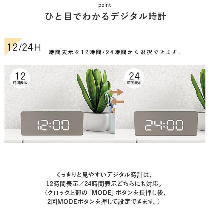 ・くっきりと見やすいデジタル時計は、12時間表示/24時間表示どちらにも対応。(クロック上部の「MODE」ボタンを長押し後、2回MODEボタンを押して設定できます。)