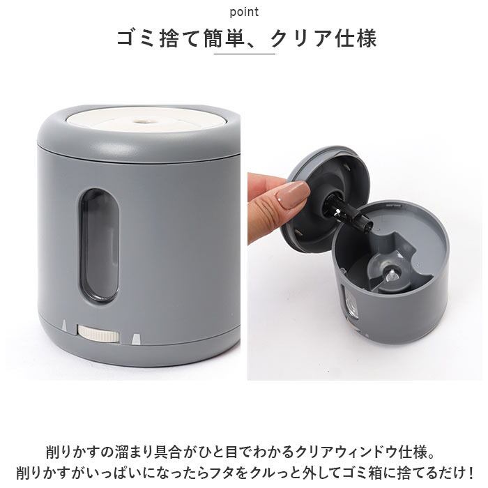 ・削りかすの溜まり具合がひと目でわかるクリアウィンドウ仕様。削りかすがいっぱいになったら、フタをクルっと外してゴミ箱に捨てるだけ!