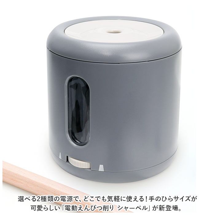 ・選べる2種類の電源で、どこでも気軽に使える!手のひらサイズが可愛らしい「電動えんぴつ削り シャーペル」が新登場。