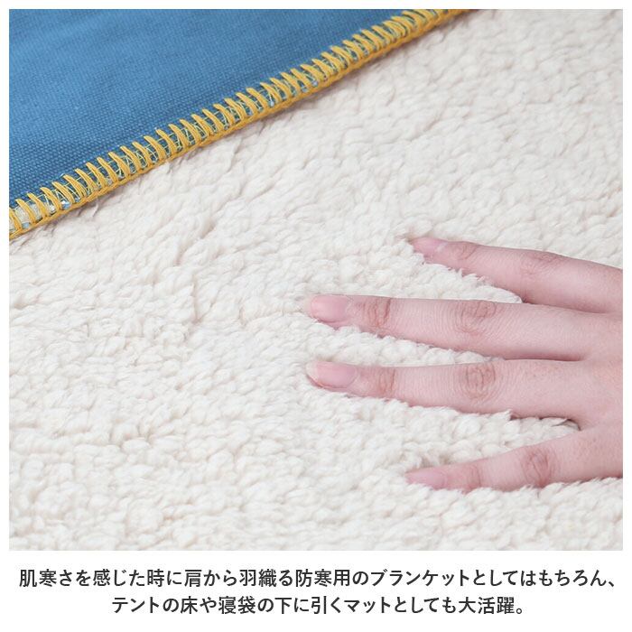 ・肌寒さを感じた時に肩から羽織る防寒用のブランケットとしてはもちろん、テントの床や寝袋の下に引くマットとしても大活躍。