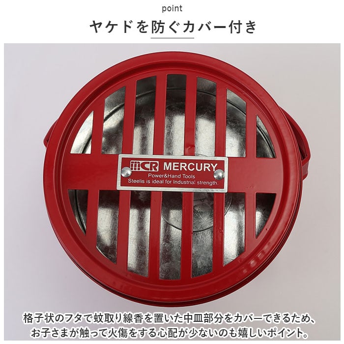 ・格子状のフタで蚊取り線香を置いた中皿部分をカバーできるため、お子さまが触って火傷をする心配が少ないのも嬉しいポイント。