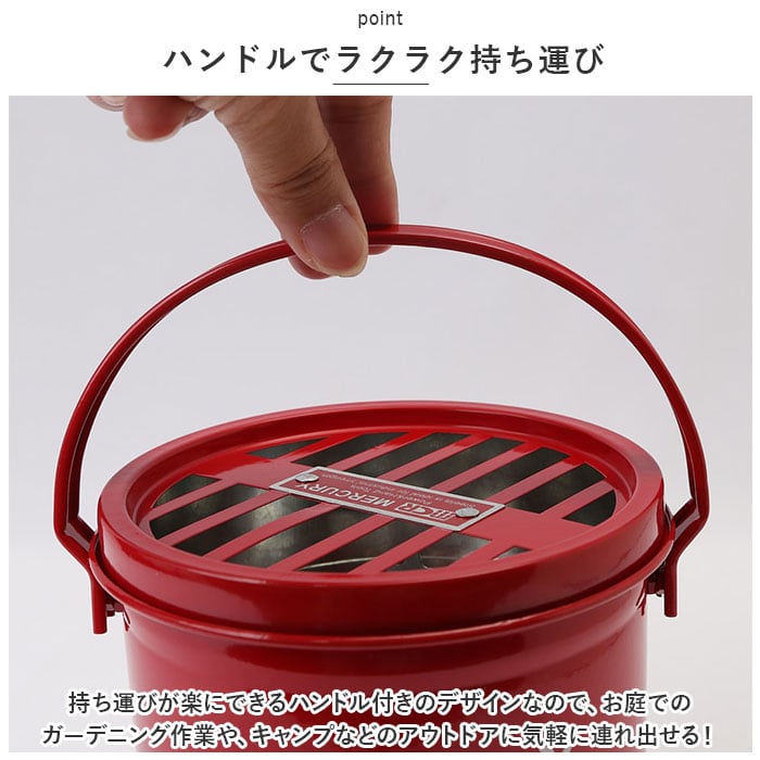 ・ミニバケツのように持ち運びが楽にできるハンドル付きのデザインなので、お庭でのガーデニング作業や、キャンプなどのアウトドアに気軽に連れ出せる!