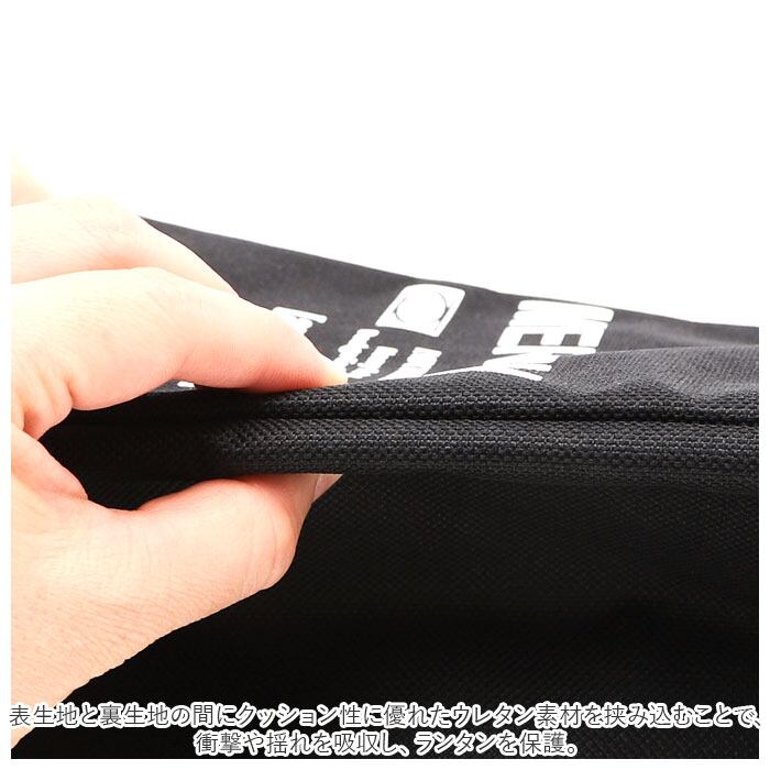 ・表生地と裏生地の間にクッション性に優れたウレタン素材を挟み込むことで、衝撃や揺れを吸収し、ランタンを保護。