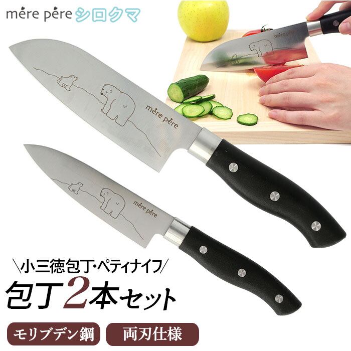 包丁セット 2本 通販 メルペール シロクマ しろくま かわいい モリブデン鋼 切れ味 軽量 軽い 持ちやすい 小さめ 包丁 2点セット 小三徳包丁 ペティナイフ ナイフ 刃物 調理道具 調理器具