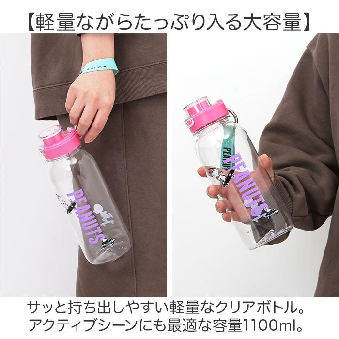 ドリンクボトル 水筒 おしゃれ 通販 スヌーピー 1100ml マイボトル クリアボトル 直飲み 大人 ウォーターボトル クリア かわいい 透明 ボトル SNOOPY 持ち歩き アウトドア スポーツ キャラクター 通勤 通学 PEANUTS 軽量 軽い ギフト