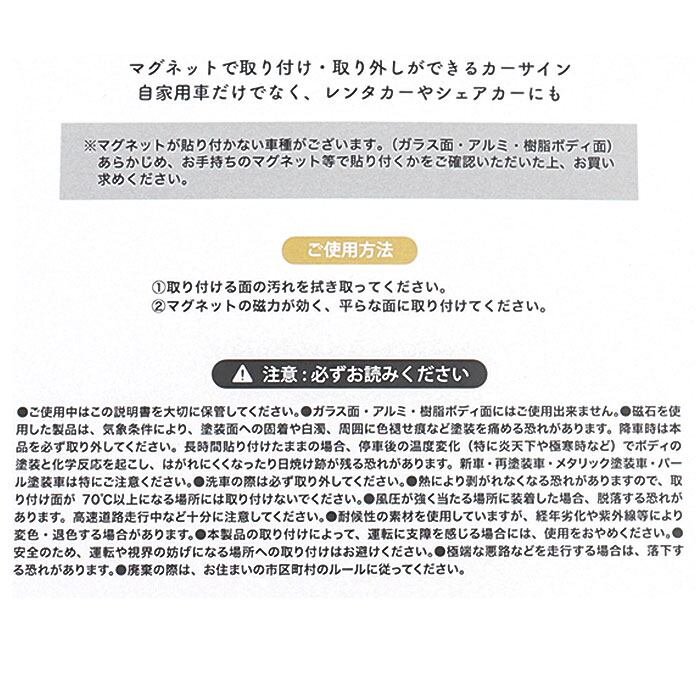 ・車体の後部にペタッと貼って車内の状況をアピール!簡単に付け外しのできるマグネットタイプ。