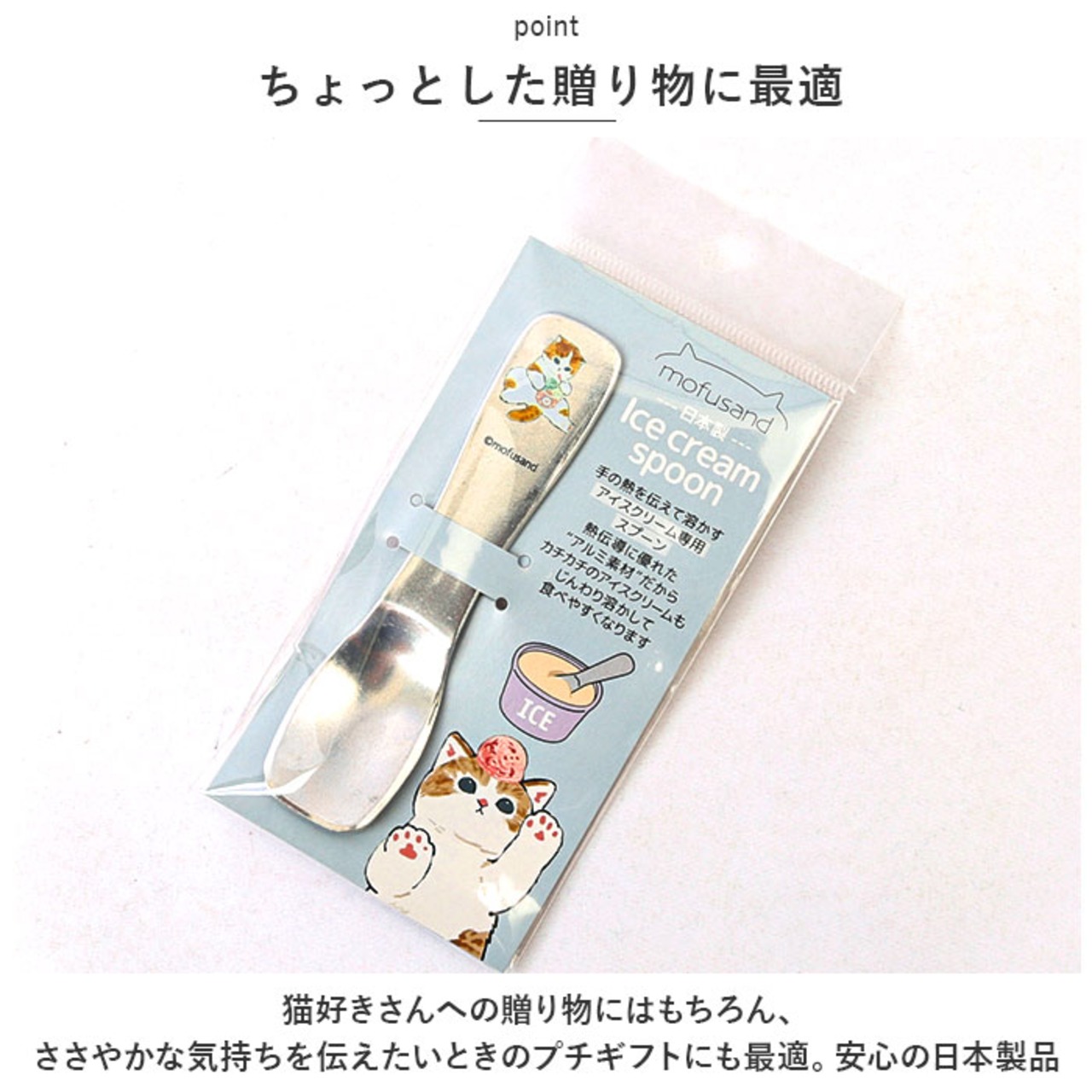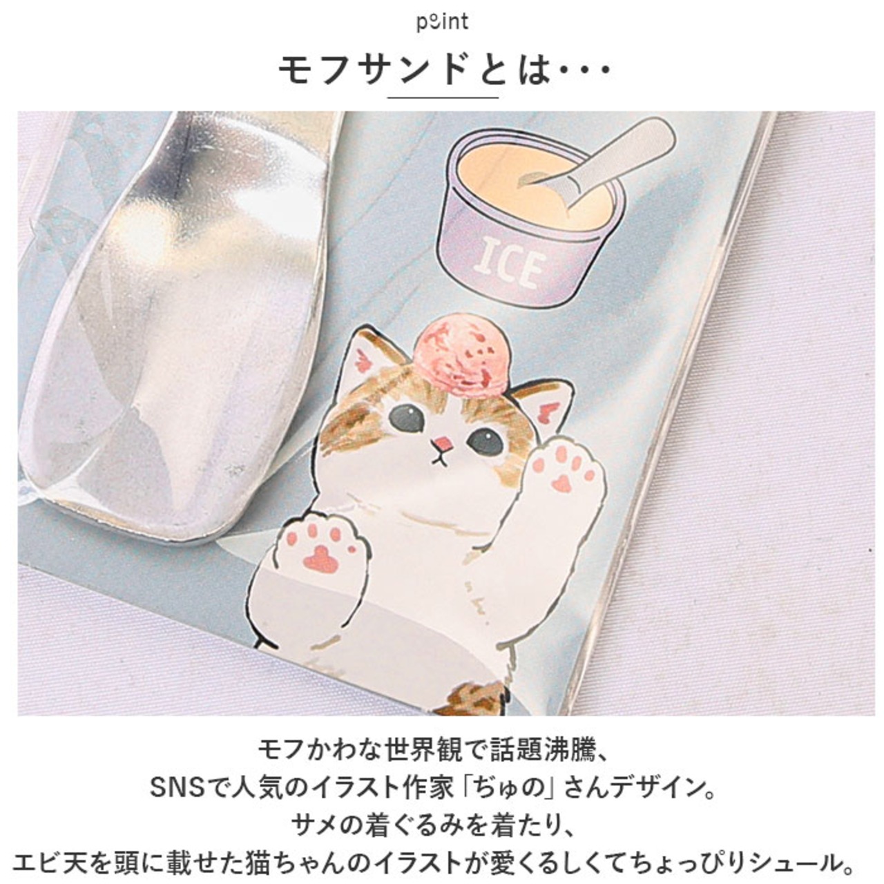・カチカチのアイスがスーッとすくえる♪もふもふ猫ちゃんのほっこりイラストでお馴染み「mofusand -モフサンド-」のアイスクリーム専用スプーン×2点セットが新登場。