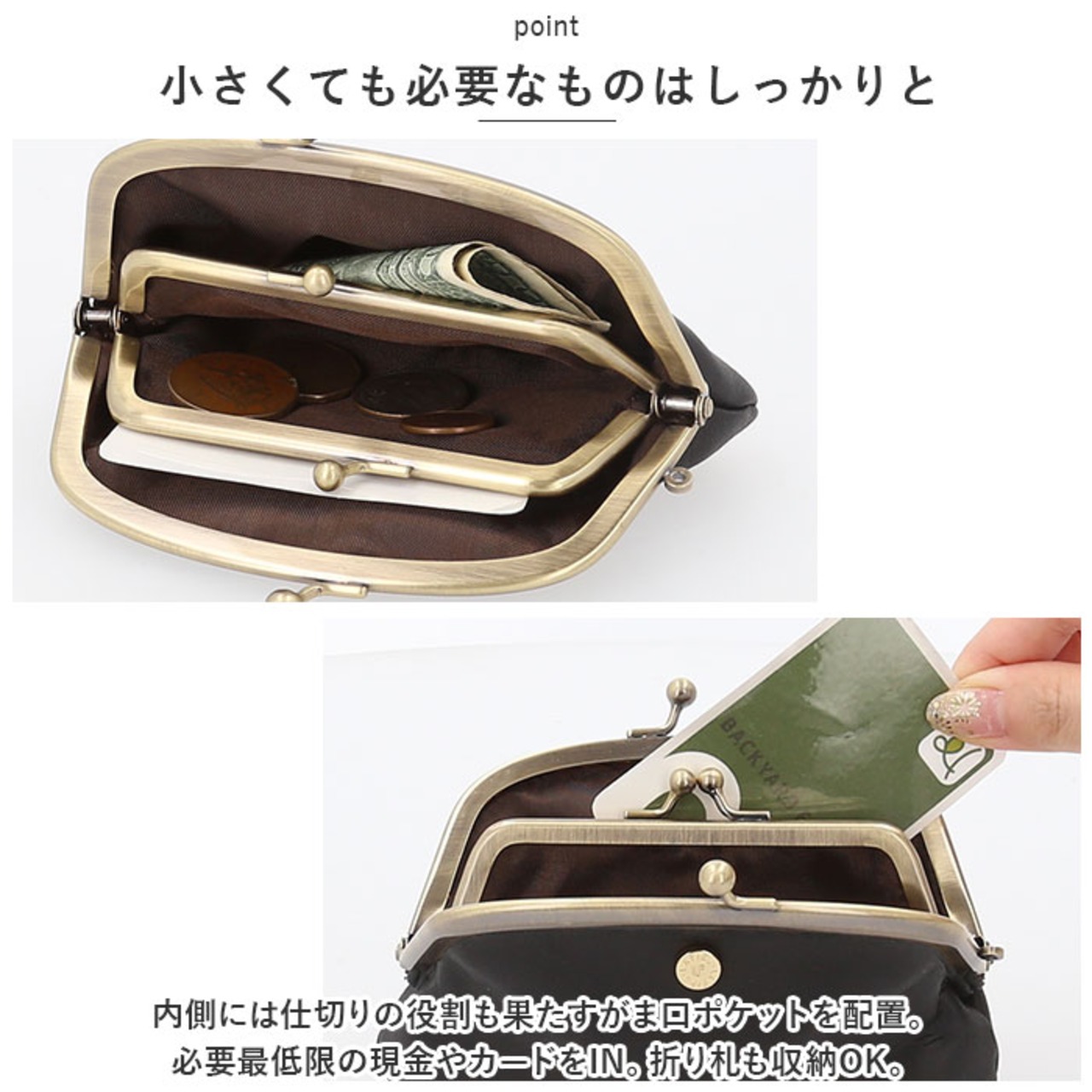 ・内側には仕切りの役割も果たすがま口ポケットを配置。必要最低限の現金やカードをIN。折り札も収納OK。