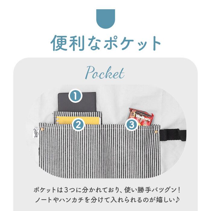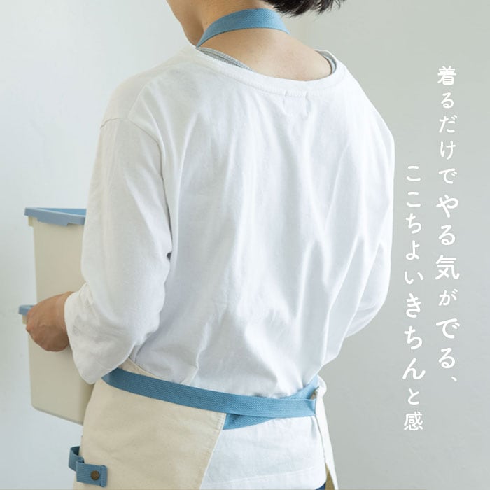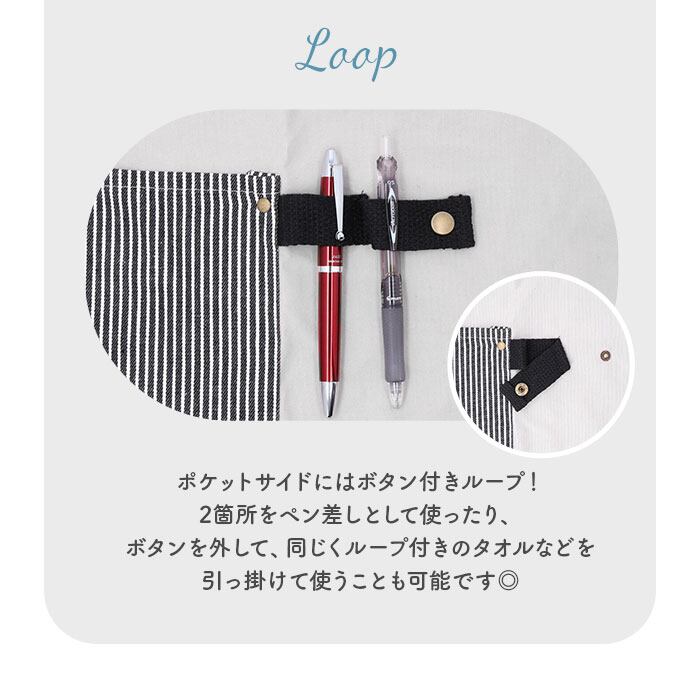 ・ボタン付きループはペン差しとして使ったり、ポケットにはレシピを書き留めたノートやハンカチなどを入れておける◎