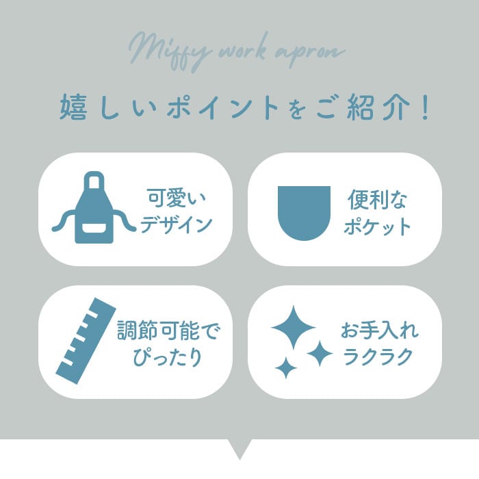 ミッフィー エプロン 通販 ワークエプロン 保育士 おしゃれ かわいい レディース 前結び 大人 ショート丈 キャラクター グッズ 母の日 プレゼント ギフト キッチンファブリック 台所用品 キッチン用品