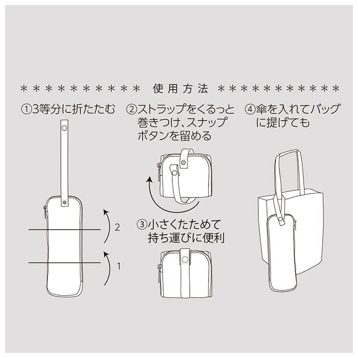 ・折りたたみ傘を収納した状態で、ストラップをカバンのハンドルに取り付けると、傘の持ち運びが楽ちん。