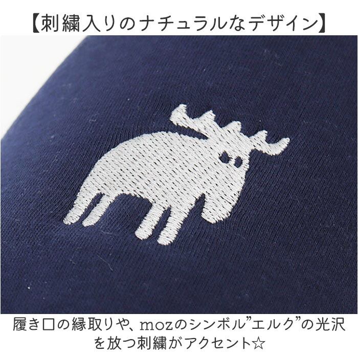 ・履き口の縁取りや、mozのシンボル”エルク”の光沢を放つ刺繍がアクセント☆