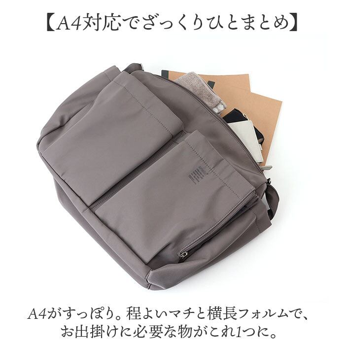 ・A4がすっぽり。程よいマチと横長フォルムで、お出掛けに必要な物がこれ1つに。