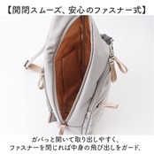 ・ガバっと開いて取り出しやすく、ファスナーを閉じれば中身の飛び出しをガード。