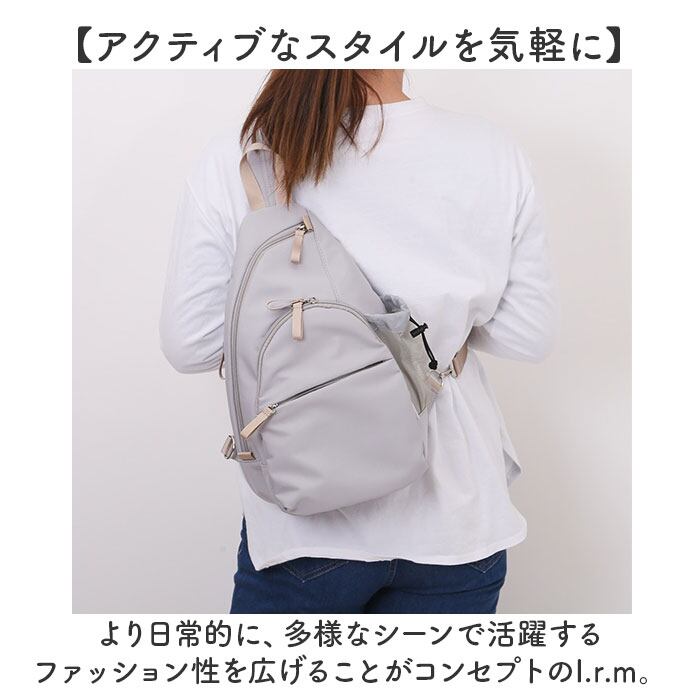 ・ラフなスタイルに素敵にマッチ!「l.r.m トライアングルボディバッグ」。