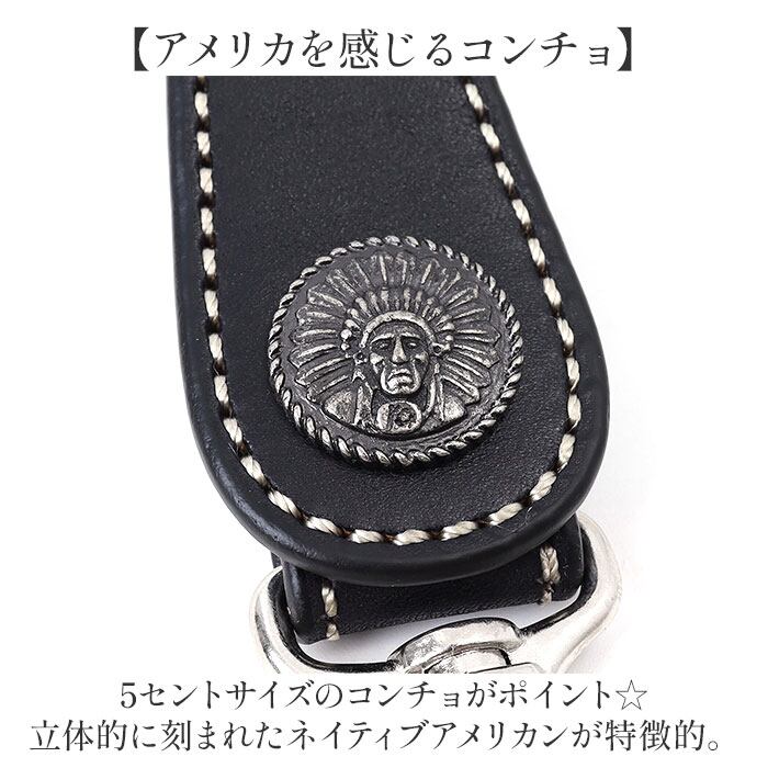 ・5セントサイズのコンチョがポイント☆立体的に刻まれたネイティブアメリカンが特徴的。