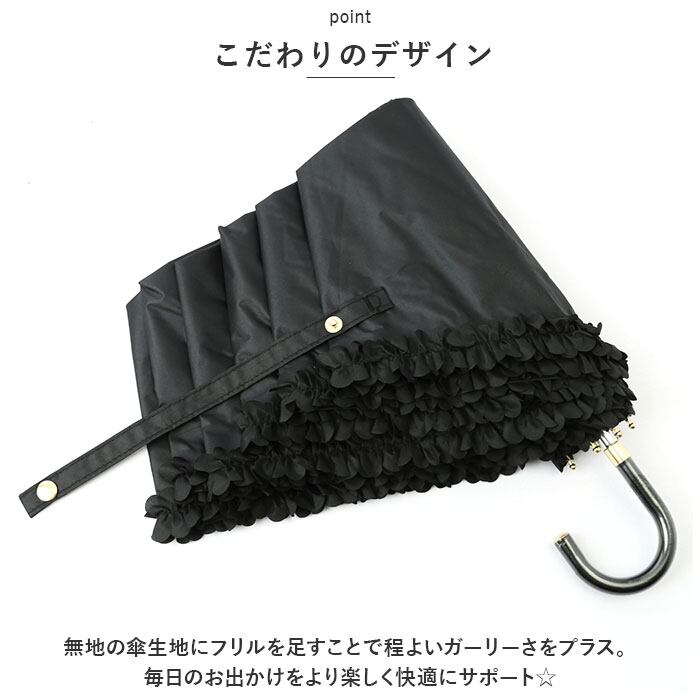 ・無地の傘生地にフリルを足すことで程よいガーリーさをプラス。毎日のお出かけをより楽しく快適にサポート☆