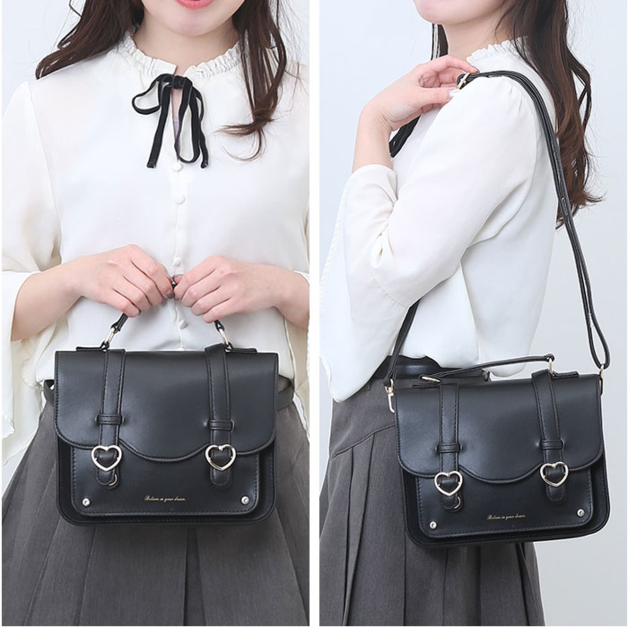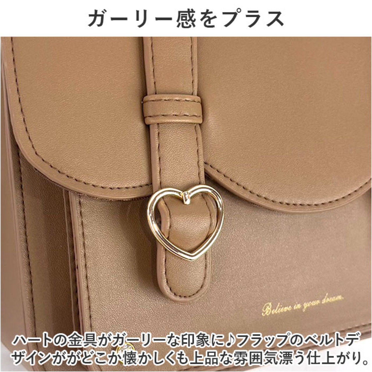・ハートの金具がガーリーな印象に♪フラップのベルトデザインががどこか懐かしくも上品な雰囲気漂う仕上がり。