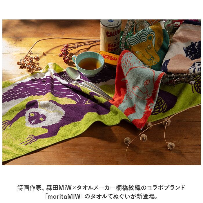 ・詩画作家、森田MiW×タオルメーカー楠橋紋織のコラボブランド「moritaMiW」のタオルてぬぐいが新登場。