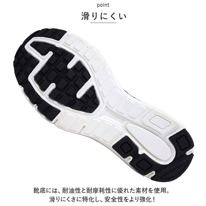 ・靴底には、耐油性と耐摩耗性に優れた素材を使用。滑りにくさに特化し、安全性をより強化!
