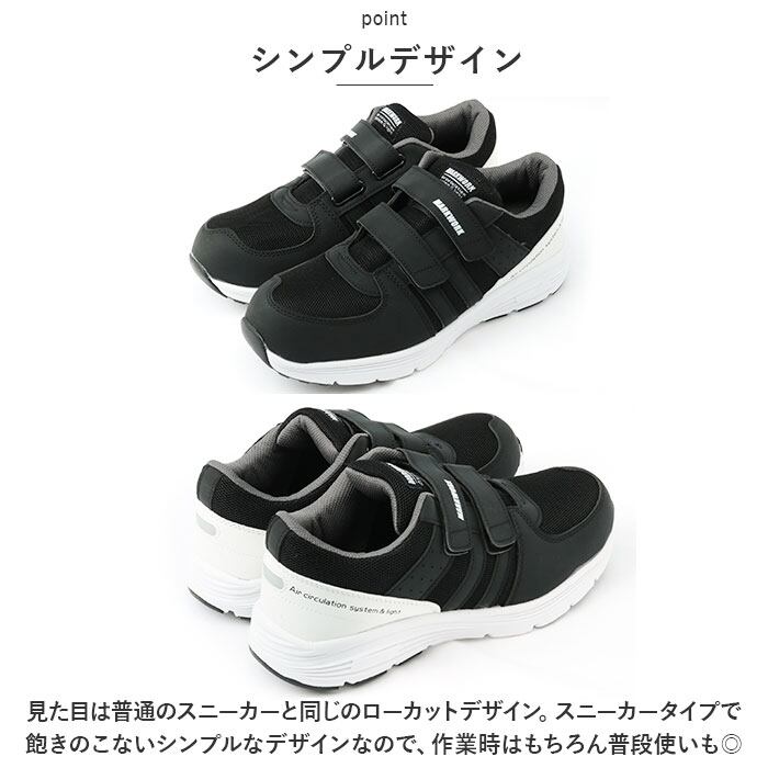 ・見た目は普通のスニーカーと同じのローカットデザイン。スニーカータイプで飽きのこないシンプルなデザインなので、作業時はもちろん普段使いもOK!
